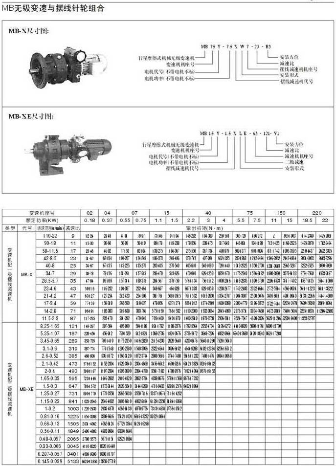 MB無(wú)級(jí)變速機(jī)與擺式針輪組合 160....